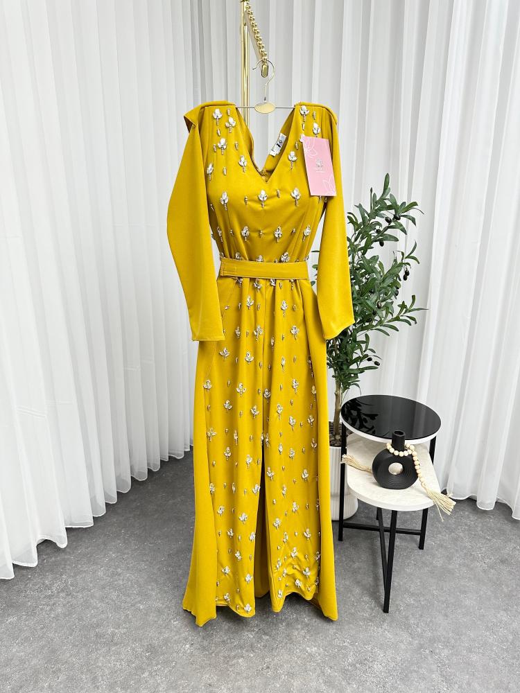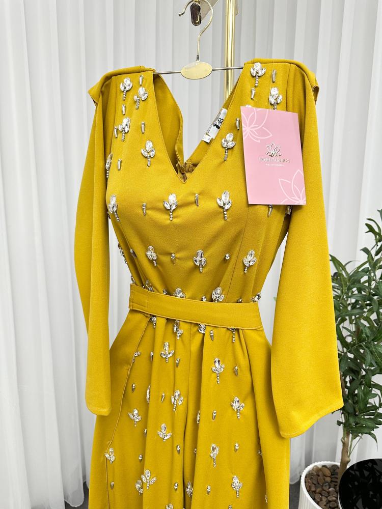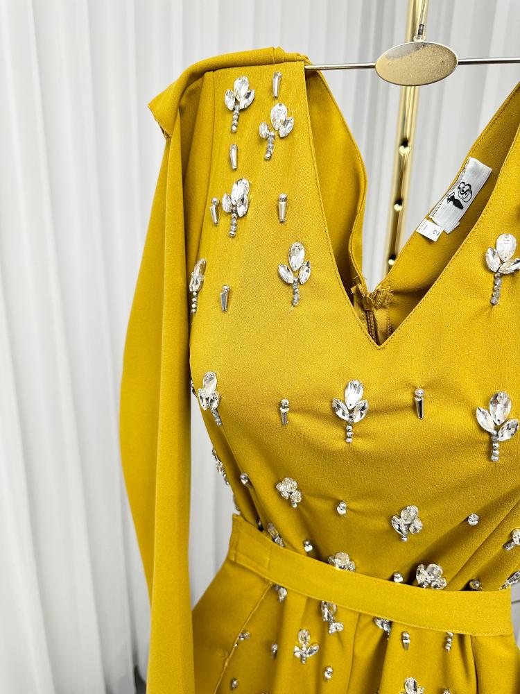جمبسوت كركمي يتميز ب خصره و تطريزه اليدوي و اكمامه و لونه الجميل