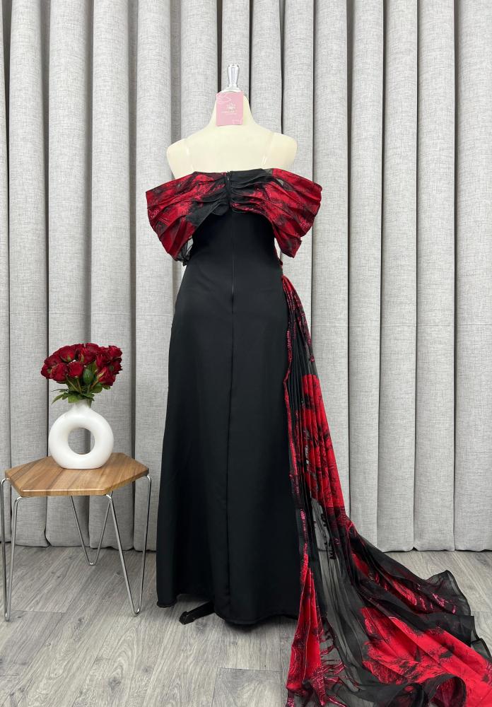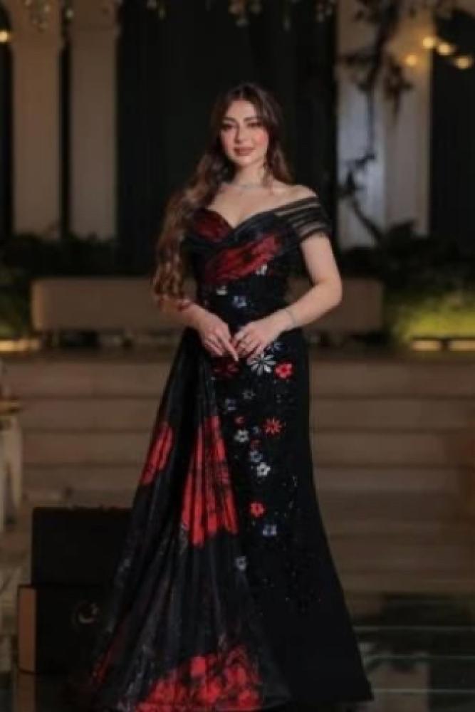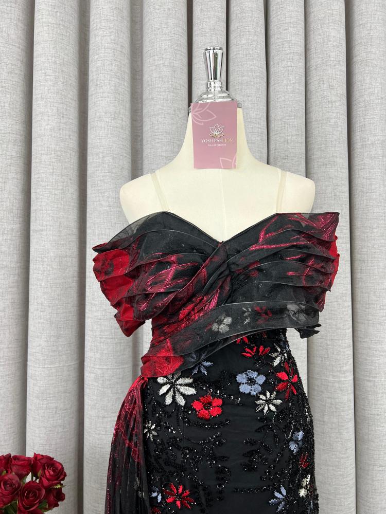 فستان عنابي أنيق بأكتاف مكشوفة وتطريز لؤلؤي فخم على الجانبين، مثالي للسهرات والمناسبات الخاصة.✨🌸