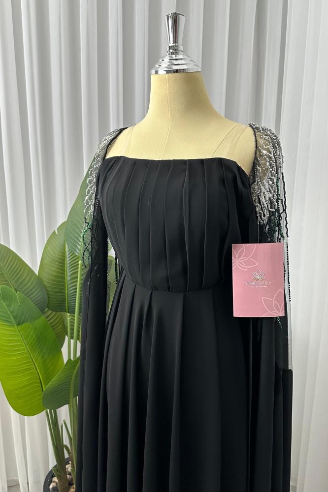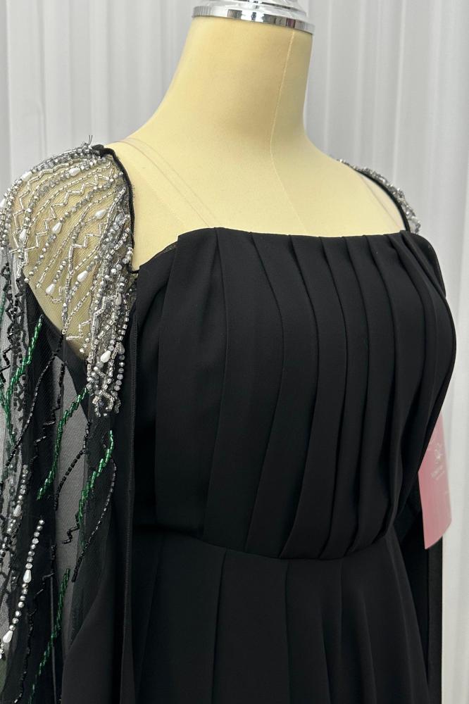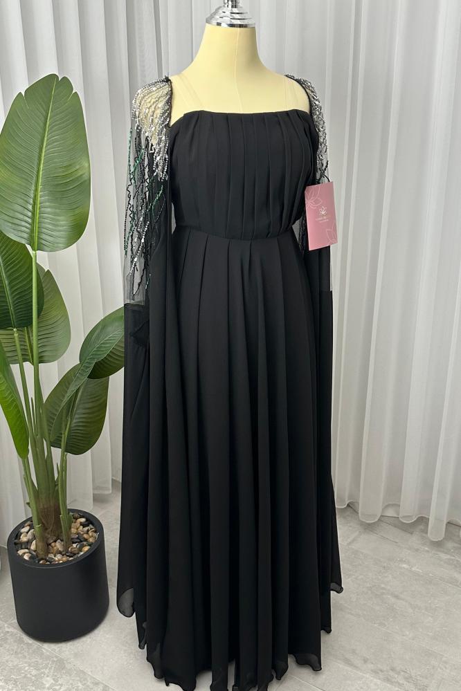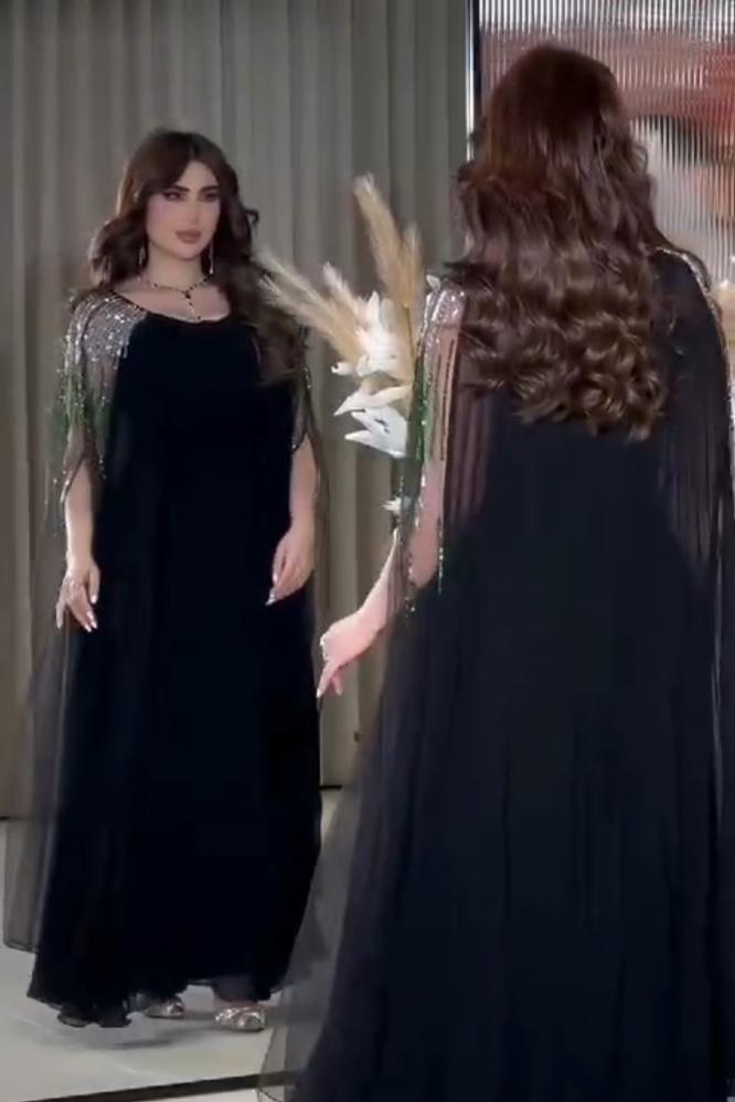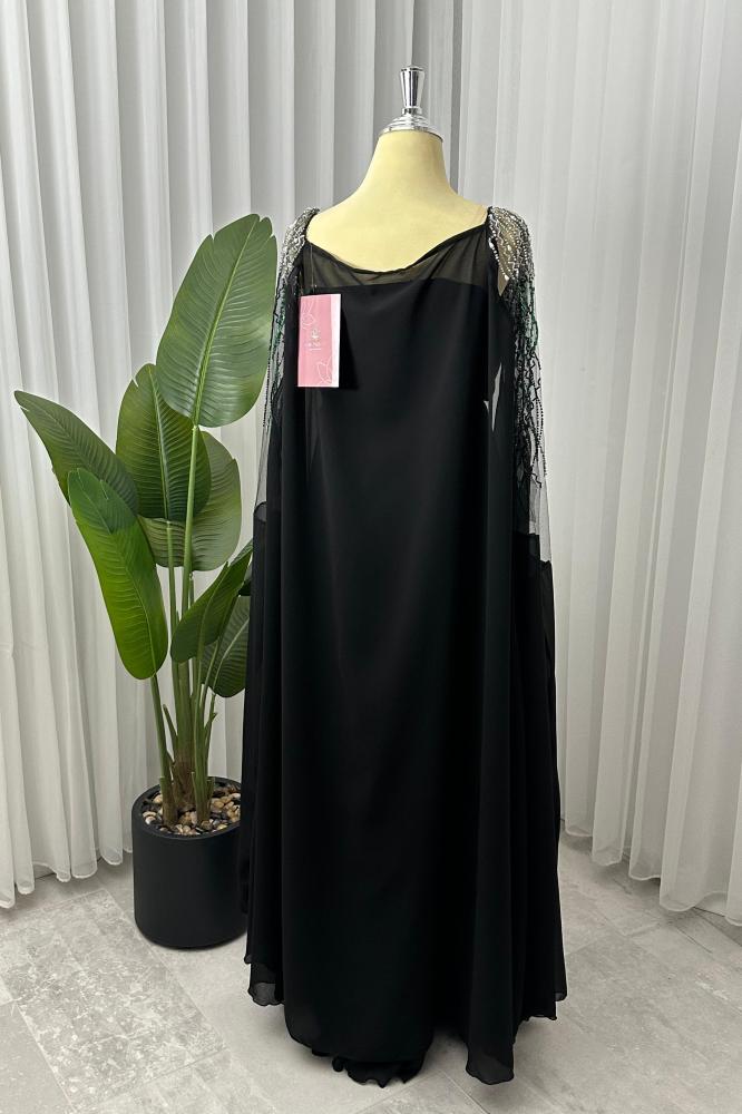 الجلابية تتميز بتصميم انيق و فاخر, الجلابية اسود اللون و تتكون من قطعه مطرزة ، مزينة ب تطريز يدوي كامل التطريز يتوزع على الجلابية كامله مما يضيف عليها لمسه فاخرة و مميزة