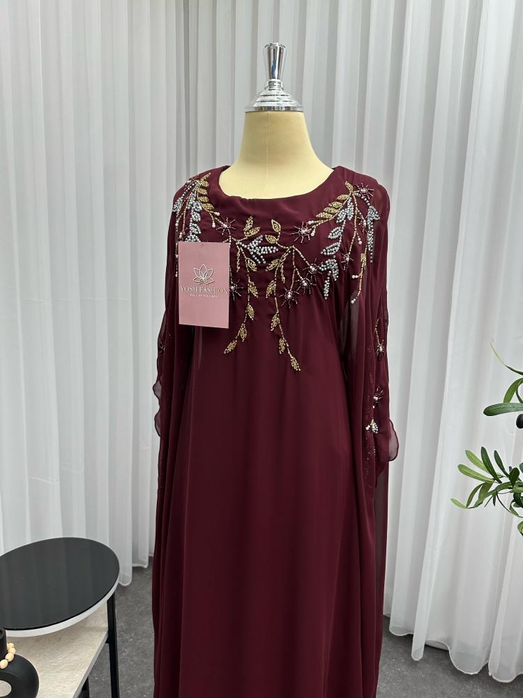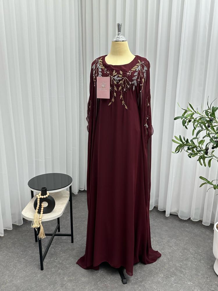 الجلابية تتميز بتصميم انيق و فاخر, الجلابية عودي اللون ، مزينة ب تطريز يدوي كامل التطريز يتوزع على الجلابية كامله مما يضيف عليها لمسه فاخرة و مميزة
